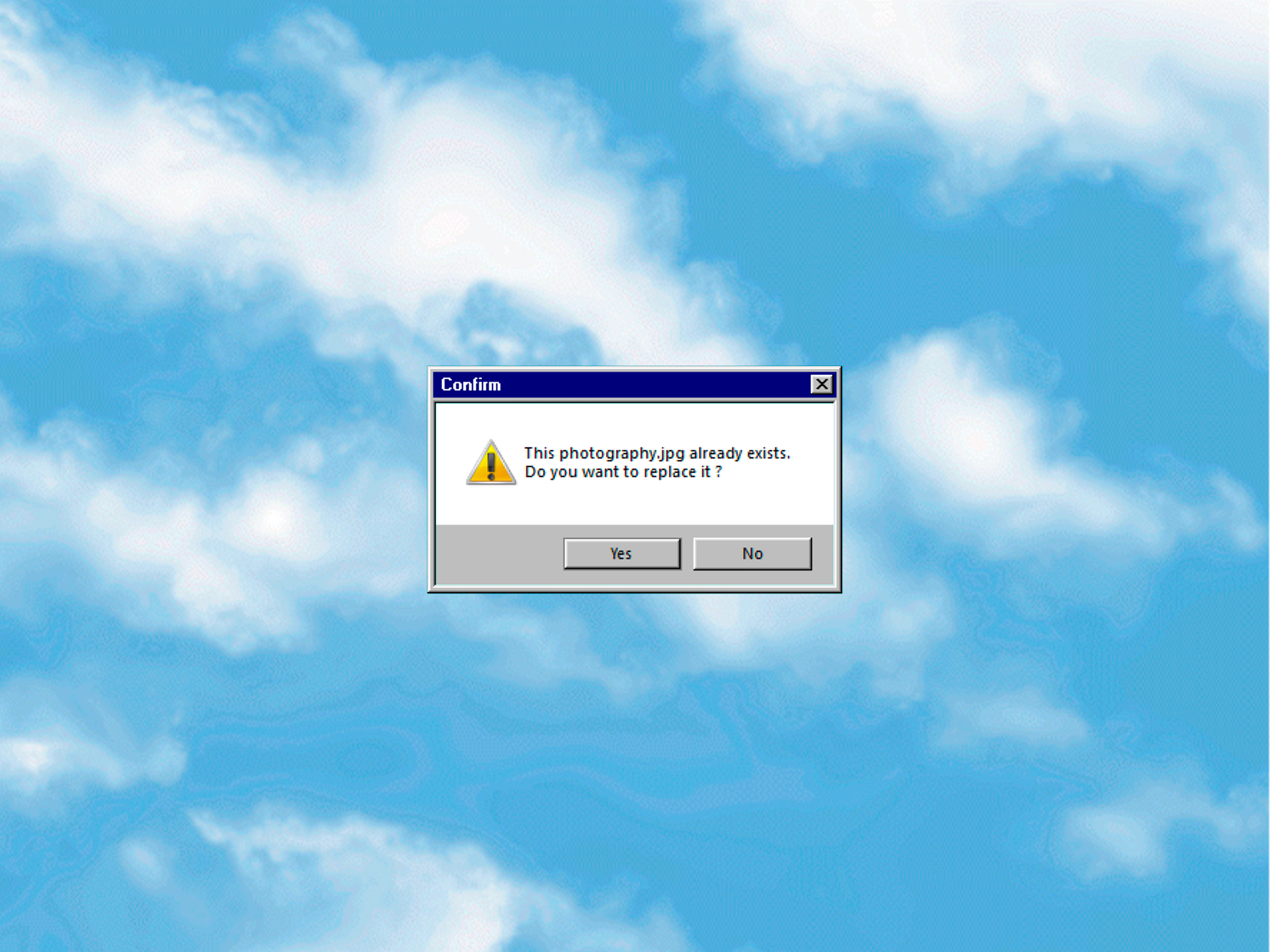 These authentic error messages from the Windows 95 operating system are an allegorical way to point out the breaches in our system of image creation and consumption.
